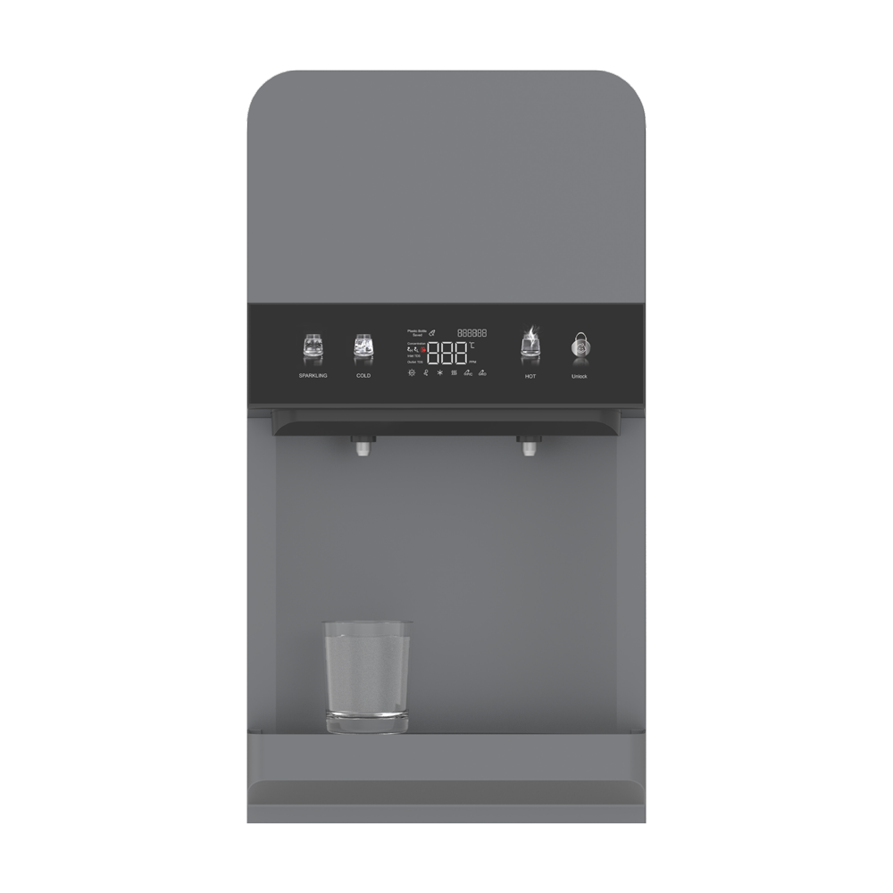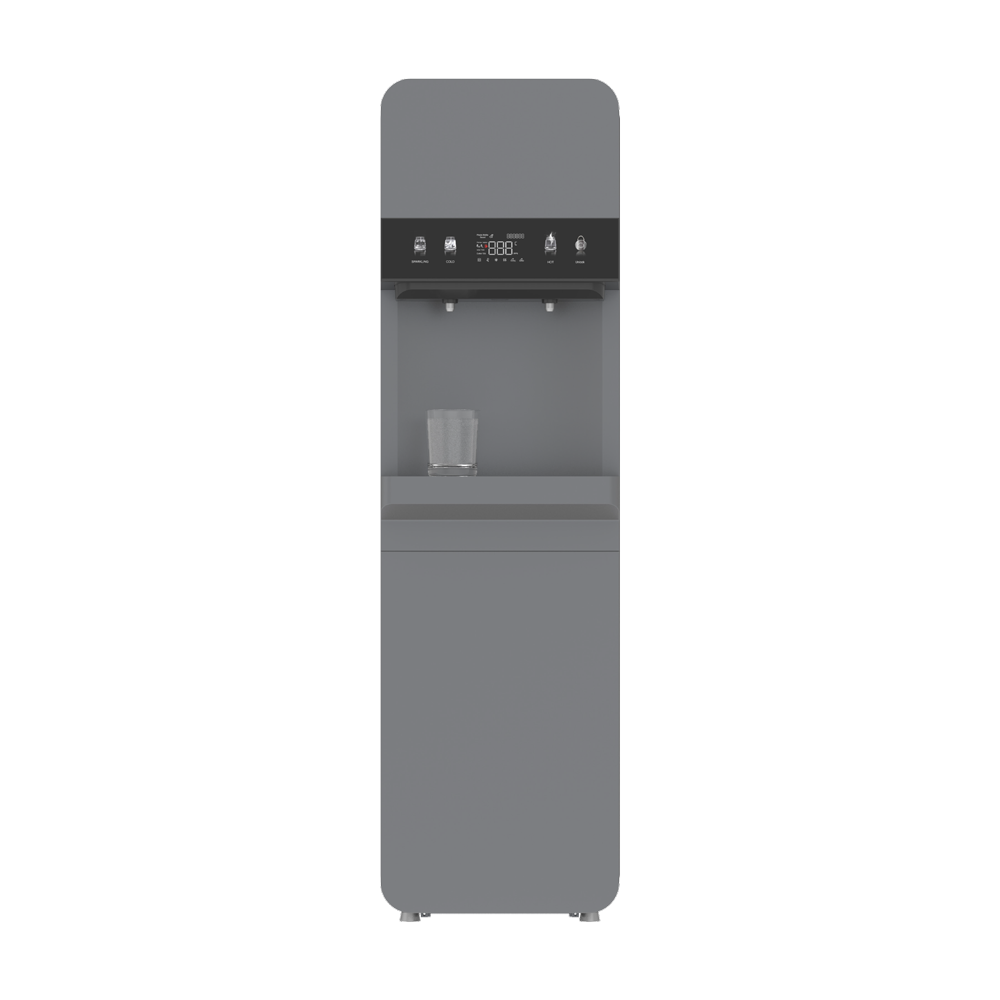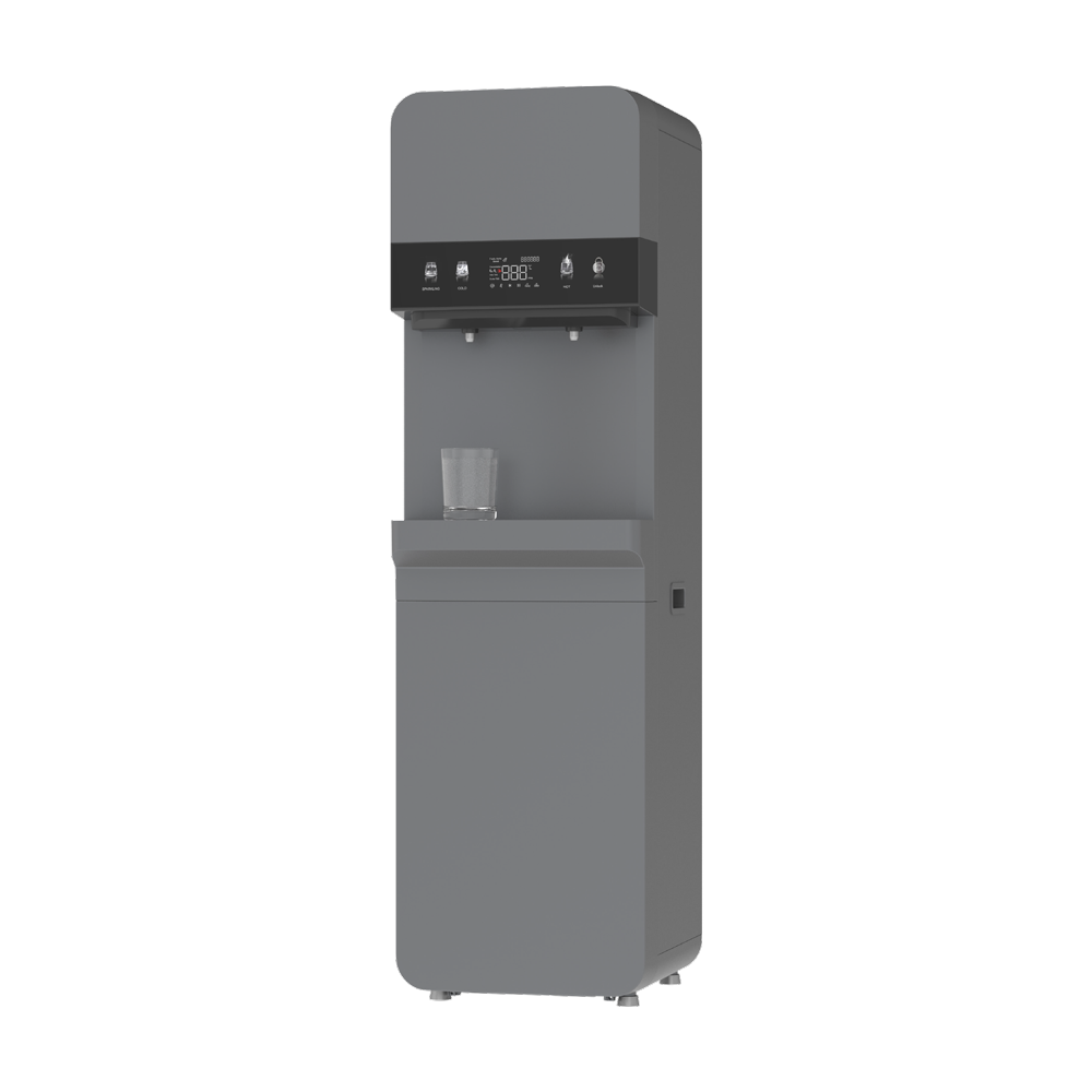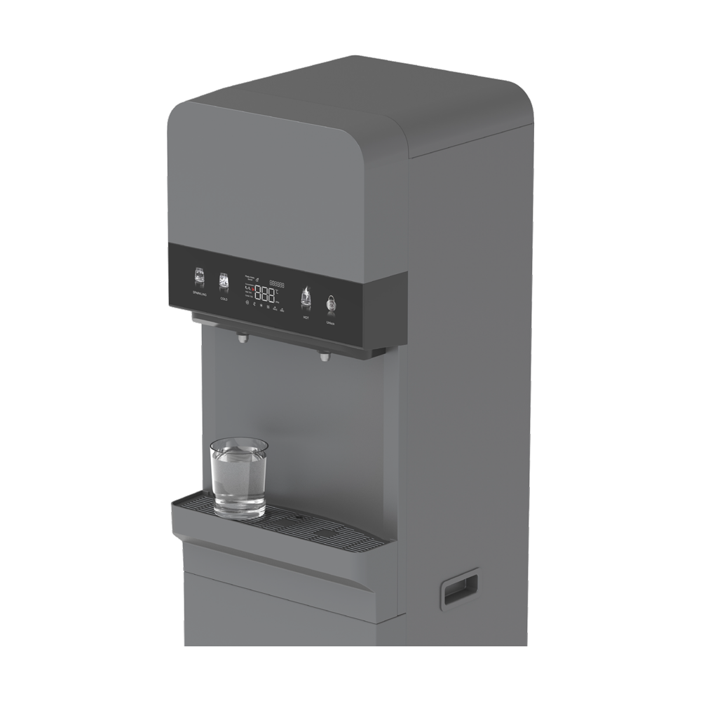 Als freistehender Wasserspender liefert er auf Knopfdruck